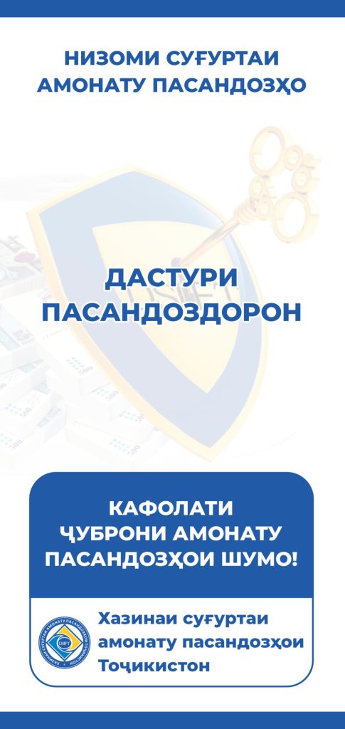 ХАЗИНАИ СУҒУРТАИ АМОНАТУ ПАСАНДОЗҲОИ ТОҶИКИСТОН – КАФОЛАТИ ҶУБРОНИ АМОНАТУ ПАСАНДОЗҲОИ ШУМО!